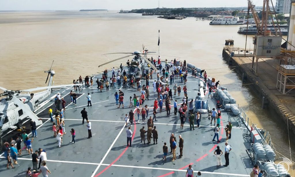 Em agosto de 2023, o navio também marcou presença em Belém, recebendo visitantes da capital paraense – Imagem: Marinha do Brasil