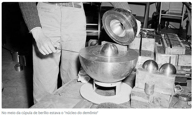 O exercício consistia em unir duas metades de uma esfera de berílio, formando uma cúpula na qual os nêutrons saltavam em direção ao núcleo.