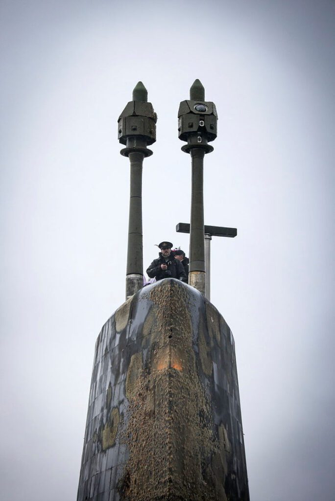Mais parece o “Monstro do Lago Ness” vindo a superfície. O desgaste do submarino é agressivo. Como o submarino passa cerca de 200 dias submerso a tripulação não consegue fazer uma manutenção mínima no casco.