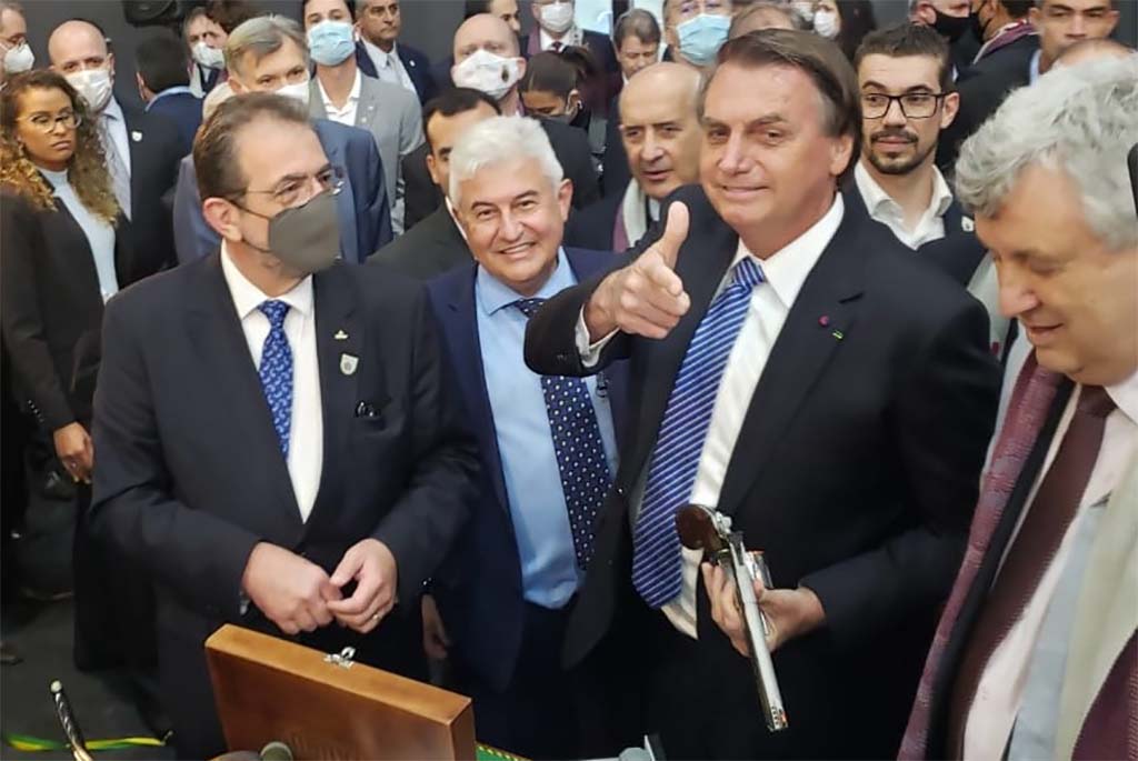 No evento, o presidente Jair Bolsonaro também foi presenteado com um capacete de grafeno fabricado pela Taurus, que será usado na "motociata" prevista para amanhã (10/07) no Rio Grande do Sul.