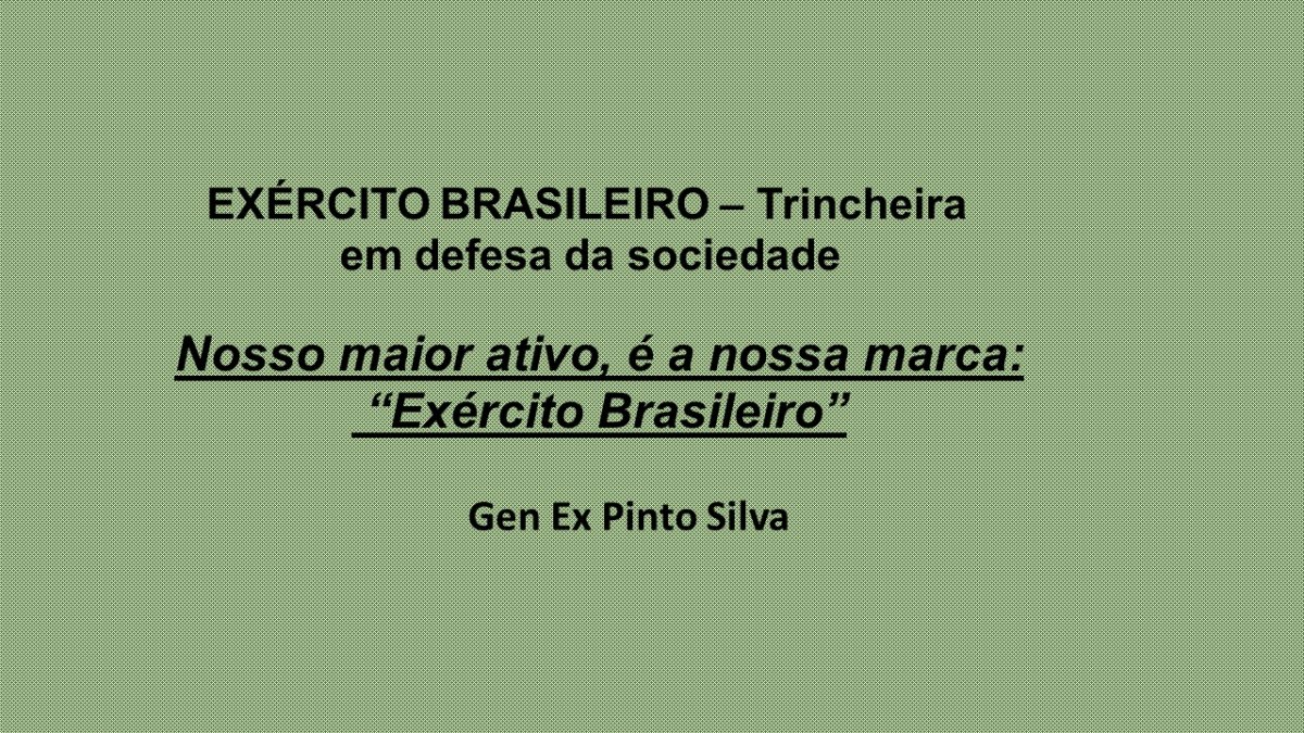 EXÉRCITO BRASILEIRO – Trincheira em defesa da sociedade.