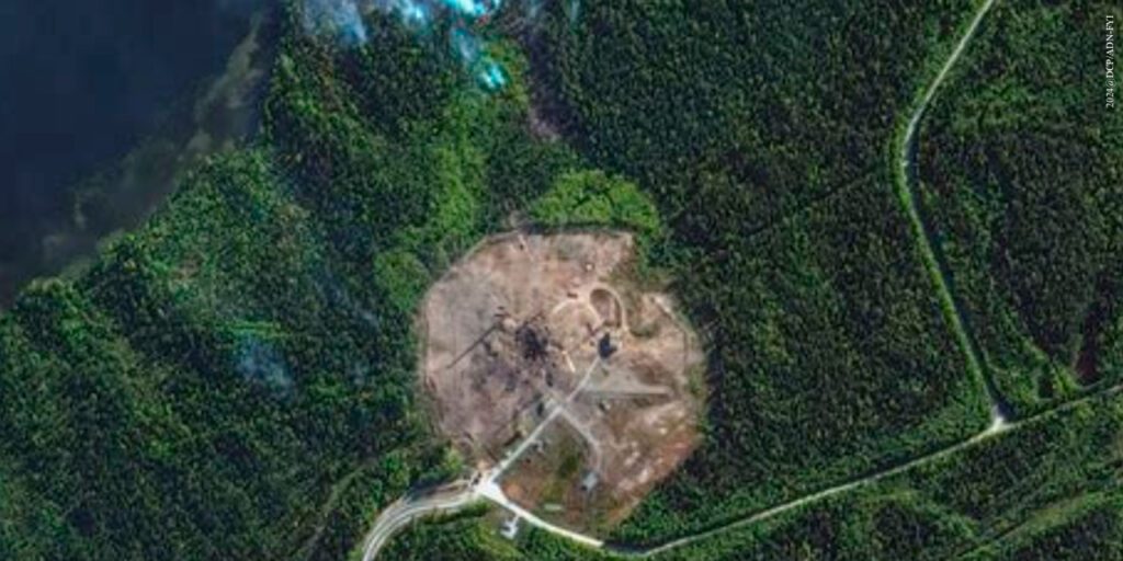 As imagens capturadas pela satélite Maxar em 21 de setembro mostram uma cratera de cerca de 60 metros de largura no local de lançamento no Cosmódromo de Plesetsk, no norte da Rússia. Elas revelam danos extensos que não eram visíveis nas fotos tiradas no início do mês.