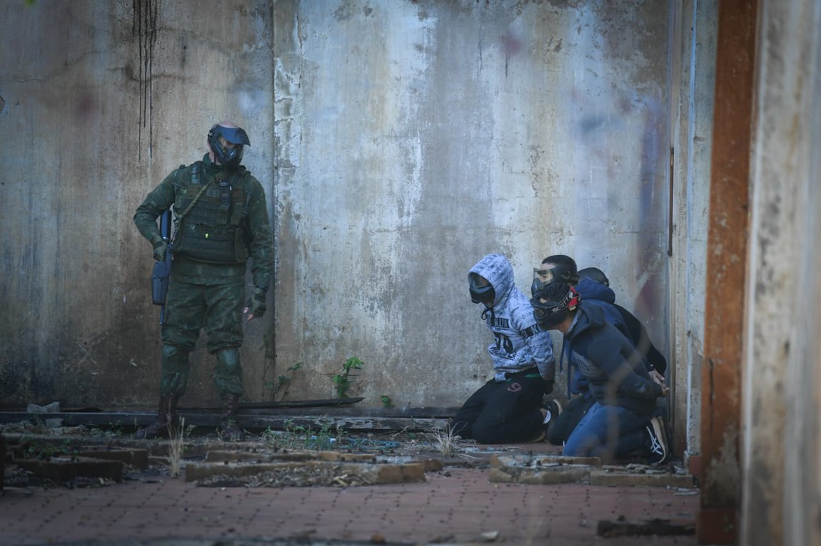 Os militares já estavam a postos no campo de instrução antes do sol nascer para a prática. O local, com cerca de 87 mil metros quadrados, uma estrutura abandonada de uma antiga fábrica, simulava a cidade, com comércios, residências e obstáculos inerentes a um ambiente real.