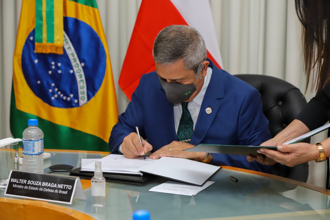 Nesta segunda-feira (3), o Ministro da Defesa, Walter Souza Braga Netto, participou de videoconferência com o Ministro da Defesa Nacional do Chile, Baldo Prokurica, quando formalizaram acordo de cooperação sobre Defesa Cibernética.