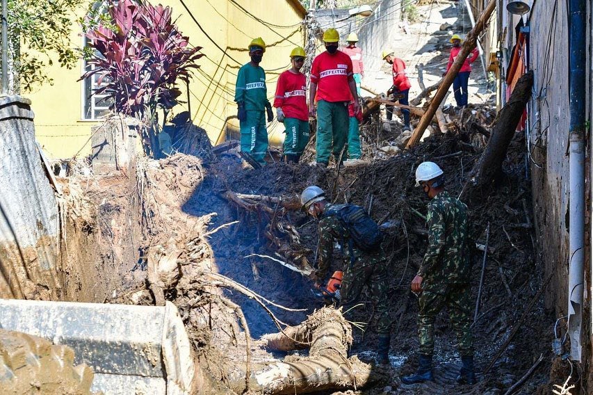 Cerca de 1,1 mil militares das Forças Armadas prosseguem no socorro às vítimas das enchentes em Petrópolis, Rio de Janeiro. Até o momento, a Marinha, a Exército e Aeronáutica, em coordenação com a Defesa Civil, transportaram mais de 310 toneladas de donativos, incluindo água, alimentos, kits de higiene e material de limpeza.