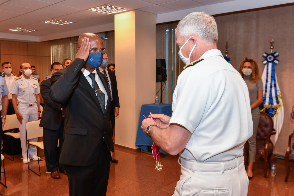 Nesta quarta-feira (22), o Comandante do Comando Sul dos Estados Unidos da América (Southcom), Almirante Craig Stephen Faller e o Tenente-Brigadeiro do Ar R1 Raul Botelho foram condecorados em cerimônia no Ministério da Defesa. Na solenidade, o Tenente-Brigadeiro Ar R1 Botelho foi agraciado com a Medalha “Legion of Merit”, entregue pelo Almirante Faller, paraninfo.