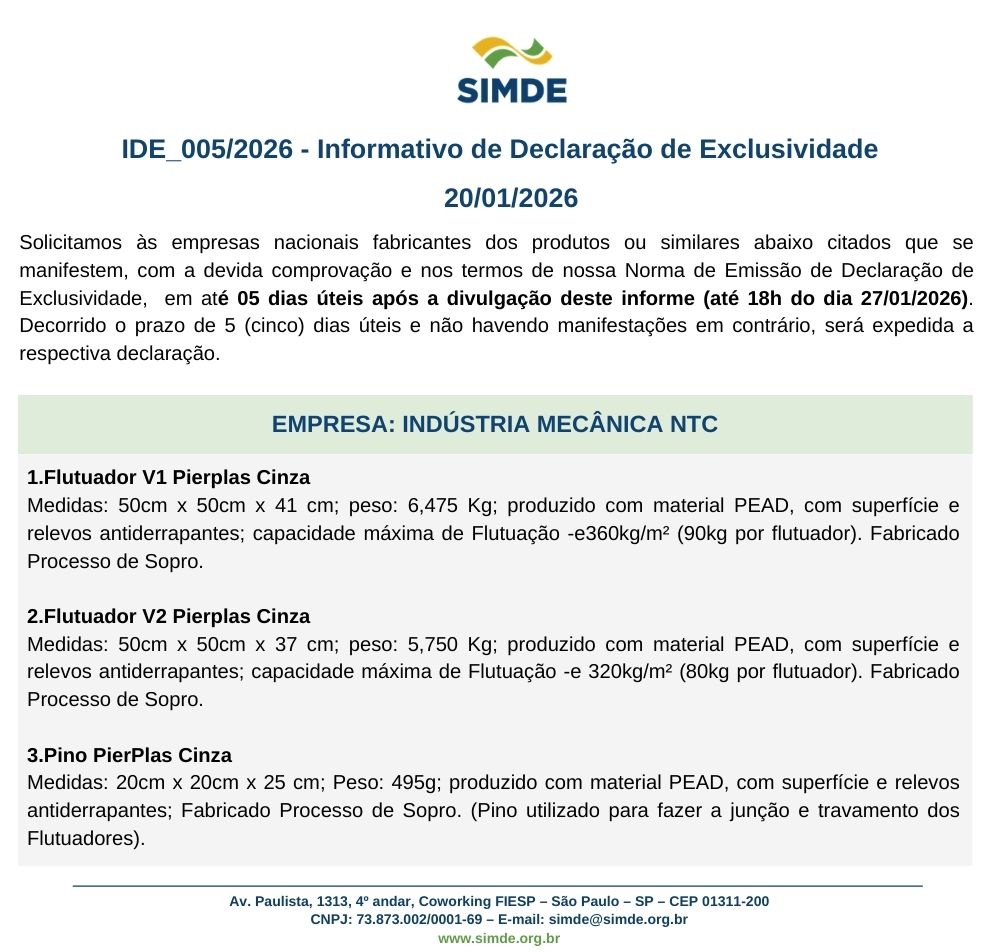 IDE 005/2026 – Informativo de Declaração de Exclusividade