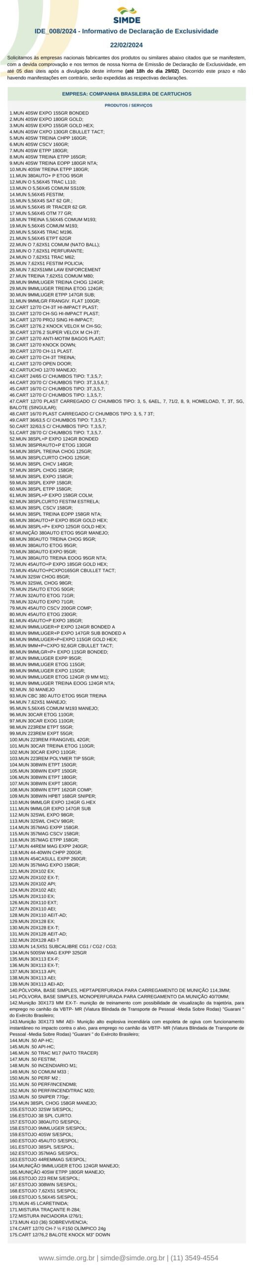 IDE 008/24 – Informativo de Declaração de Exclusividade