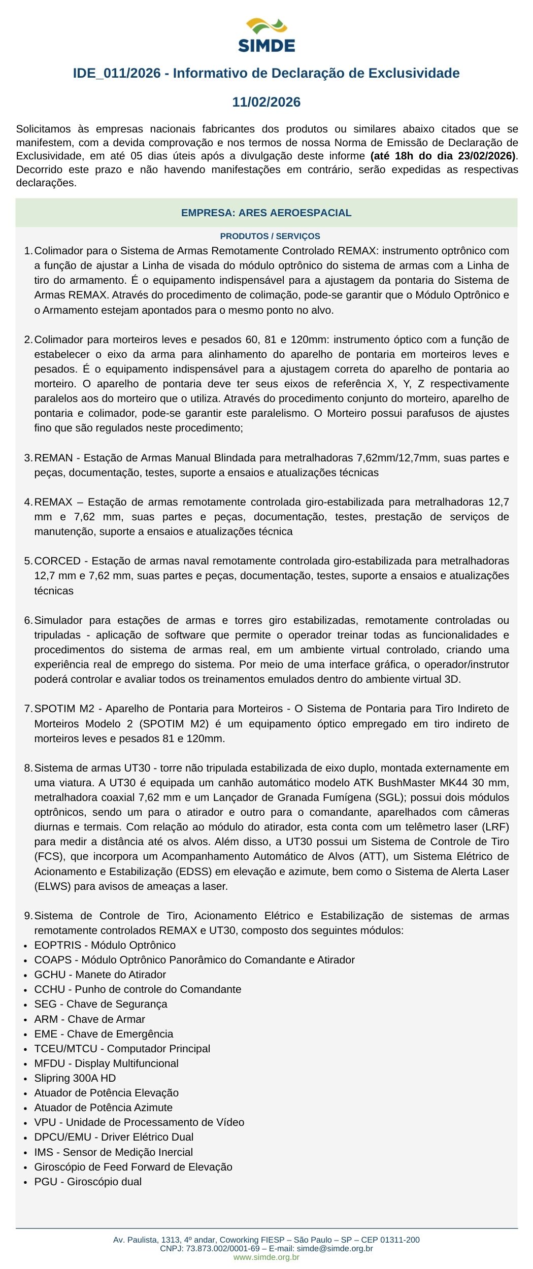IDE 011/2026 – Informativo de Declaração de Exclusividade