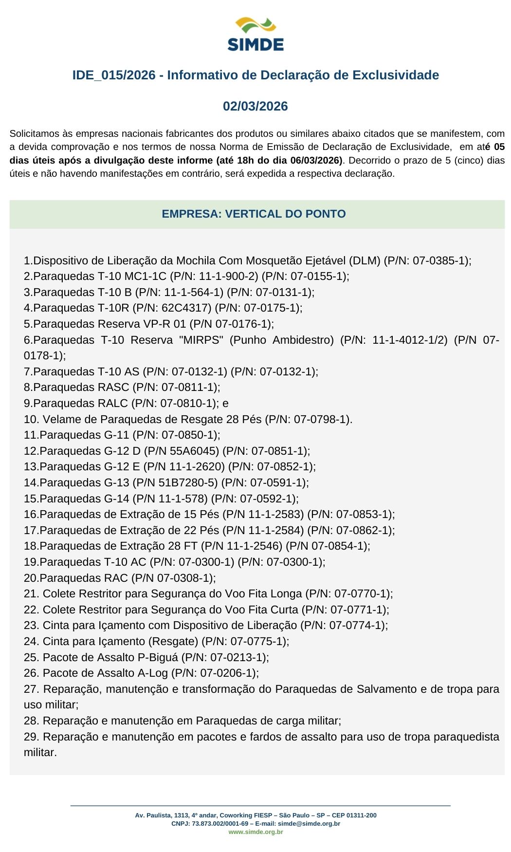 IDE 015/2026 – Informativo de Declaração de Exclusividade