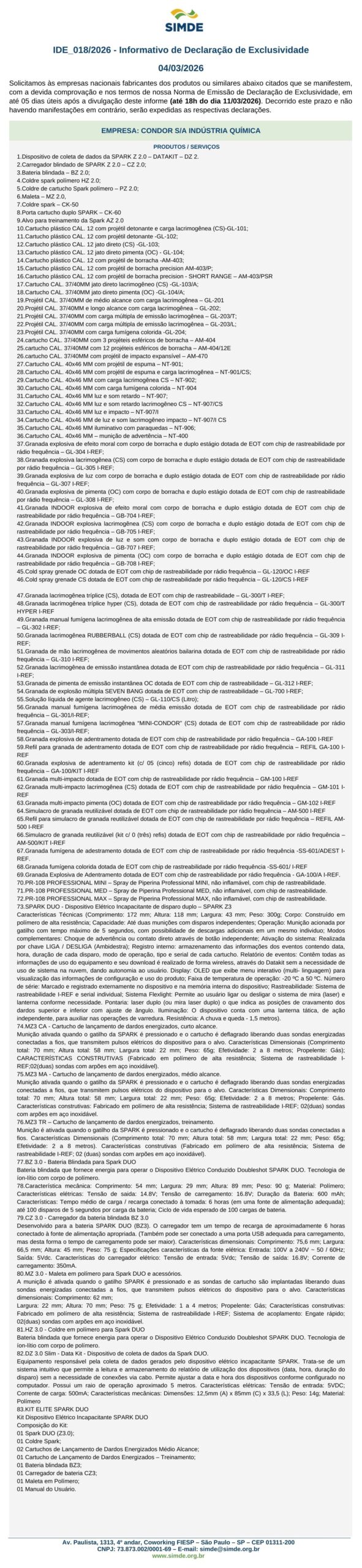 IDE 018/2026 – Informativo de Declaração de Exclusividade