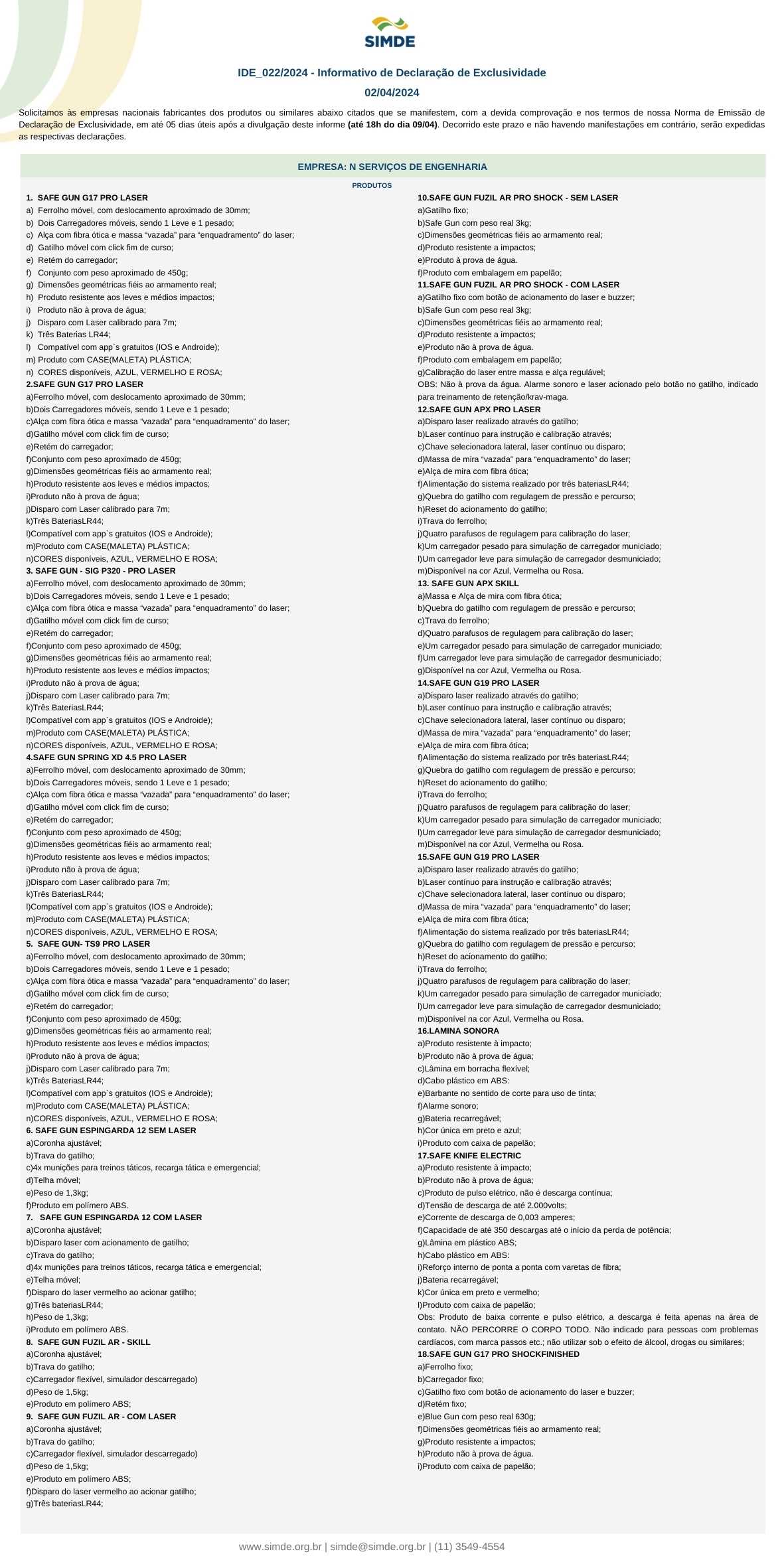 IDE 022/24 – Informativo de Declaração de Exclusividade
