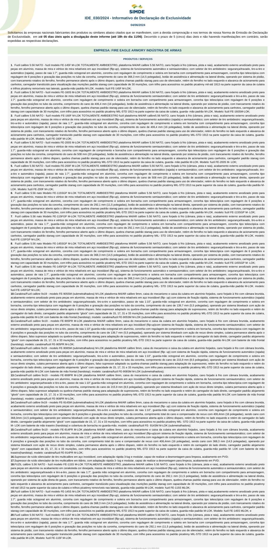 EMPRESA: FIRE EAGLE ARMORY INDÚSTRIA DE ARMAS