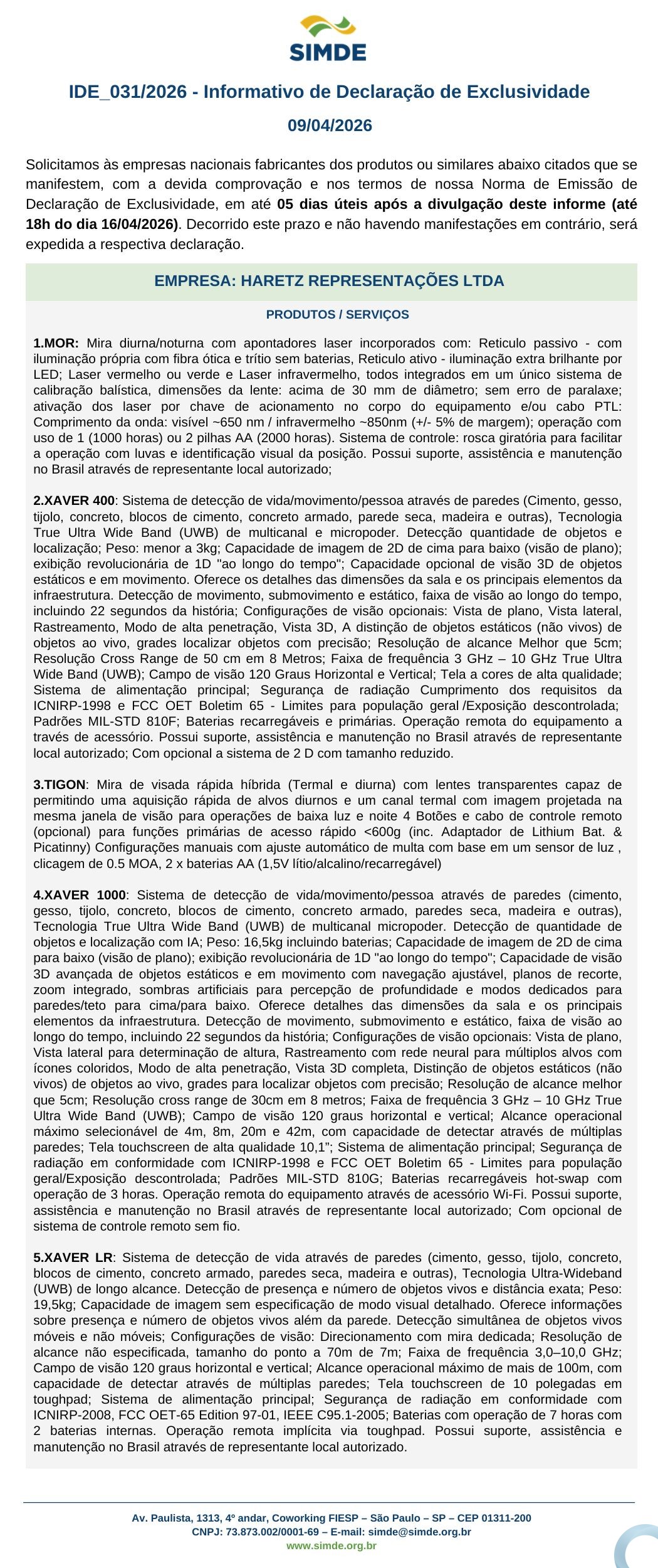 EMPRESA: IDE031/2026 – HARETZ REPRESENTAÇÕES LTDA