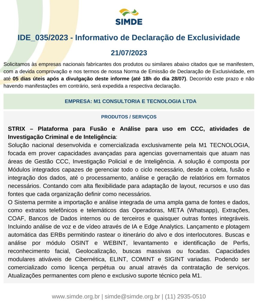 IDE 035/23 – Informativo de Declaração de Exclusividade