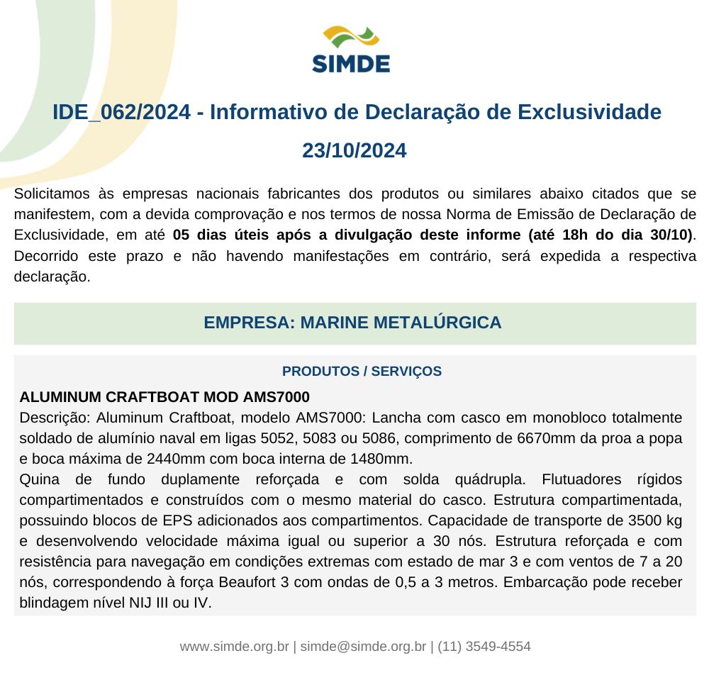 IDE 062/24 – Informativo de Declaração de Exclusividade