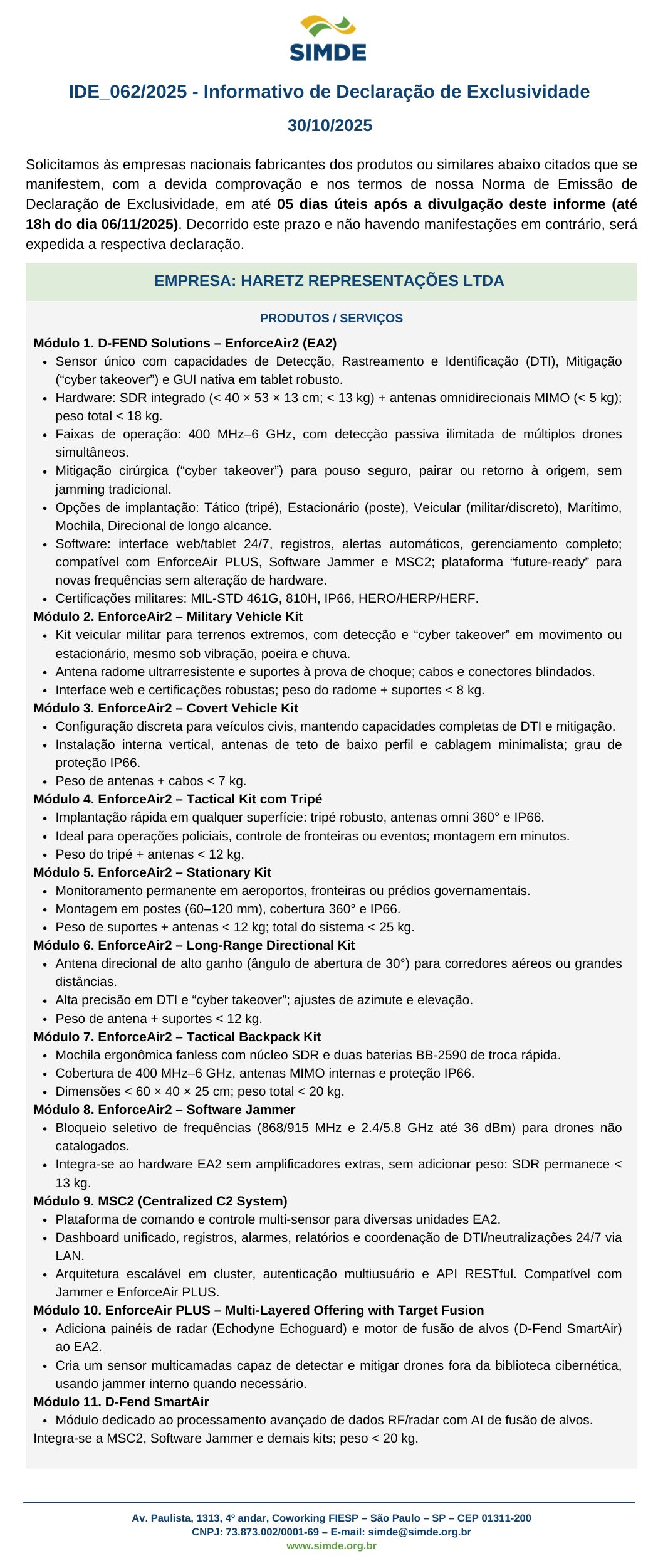 IDE 062/2025 – Informativo de Declaração de Exclusividade