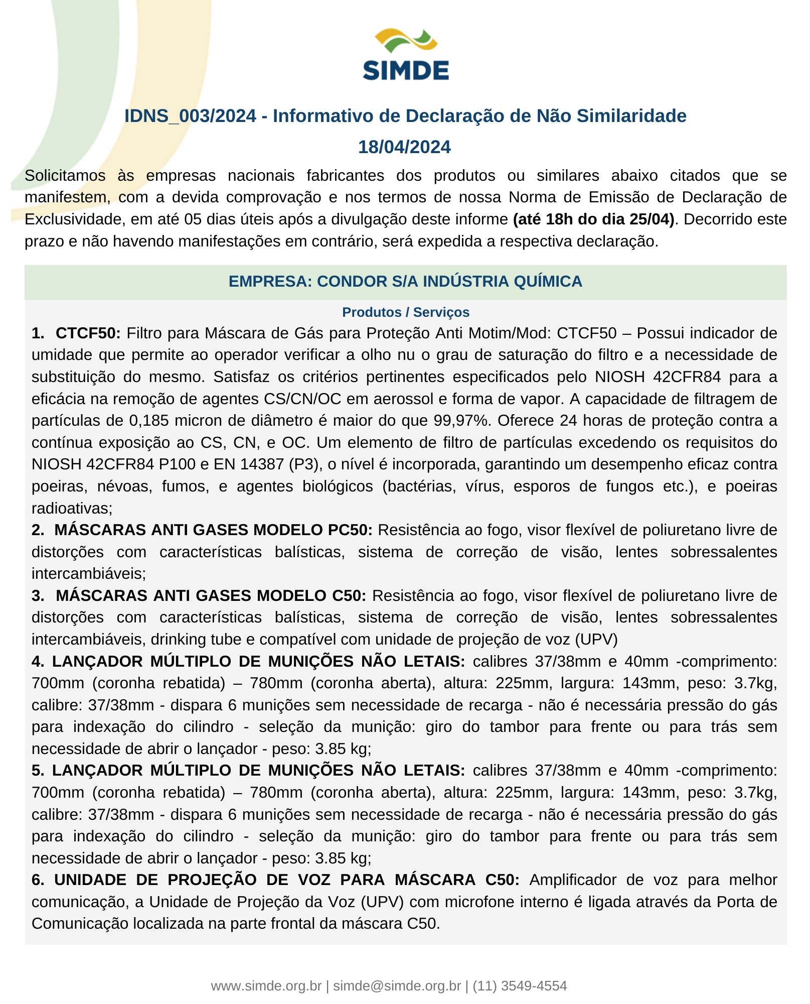 IDNS 003/2024 – Informativo de Declaração de Não Similaridade