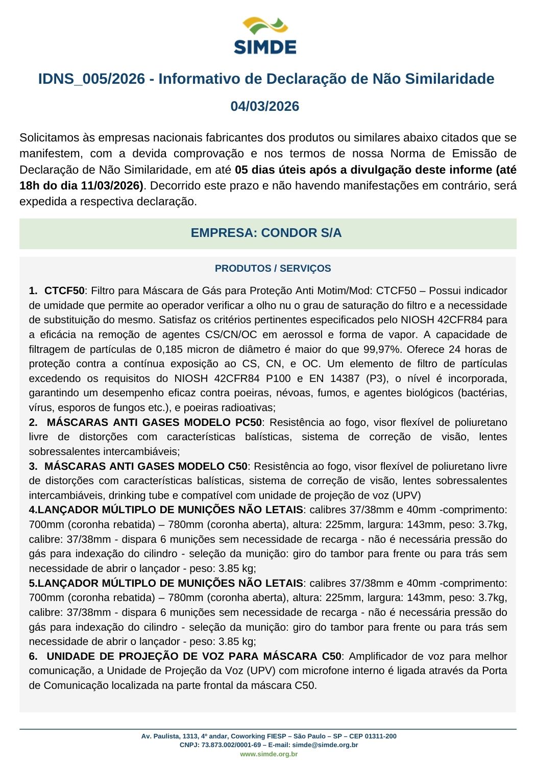 IDNS 005/2026 – Informativo de Declaração de Não Similaridade