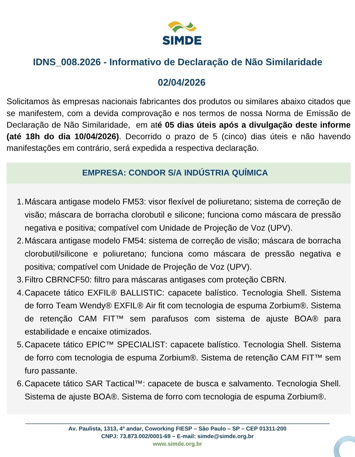 IDNS 008/2026 – Informativo de Declaração de Não Similaridade
