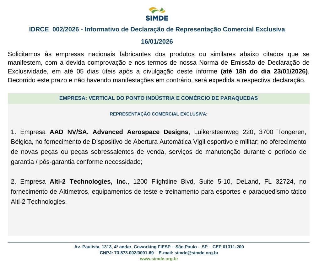 IDE 002/2026 – Informativo de Declaração de Representação Comercial Eclusiva
