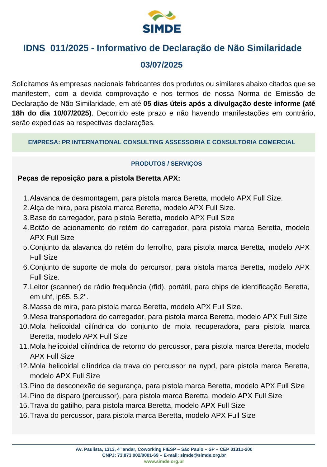 IDNS 011/2025 – Informativo de Declaração de Não Similaridade