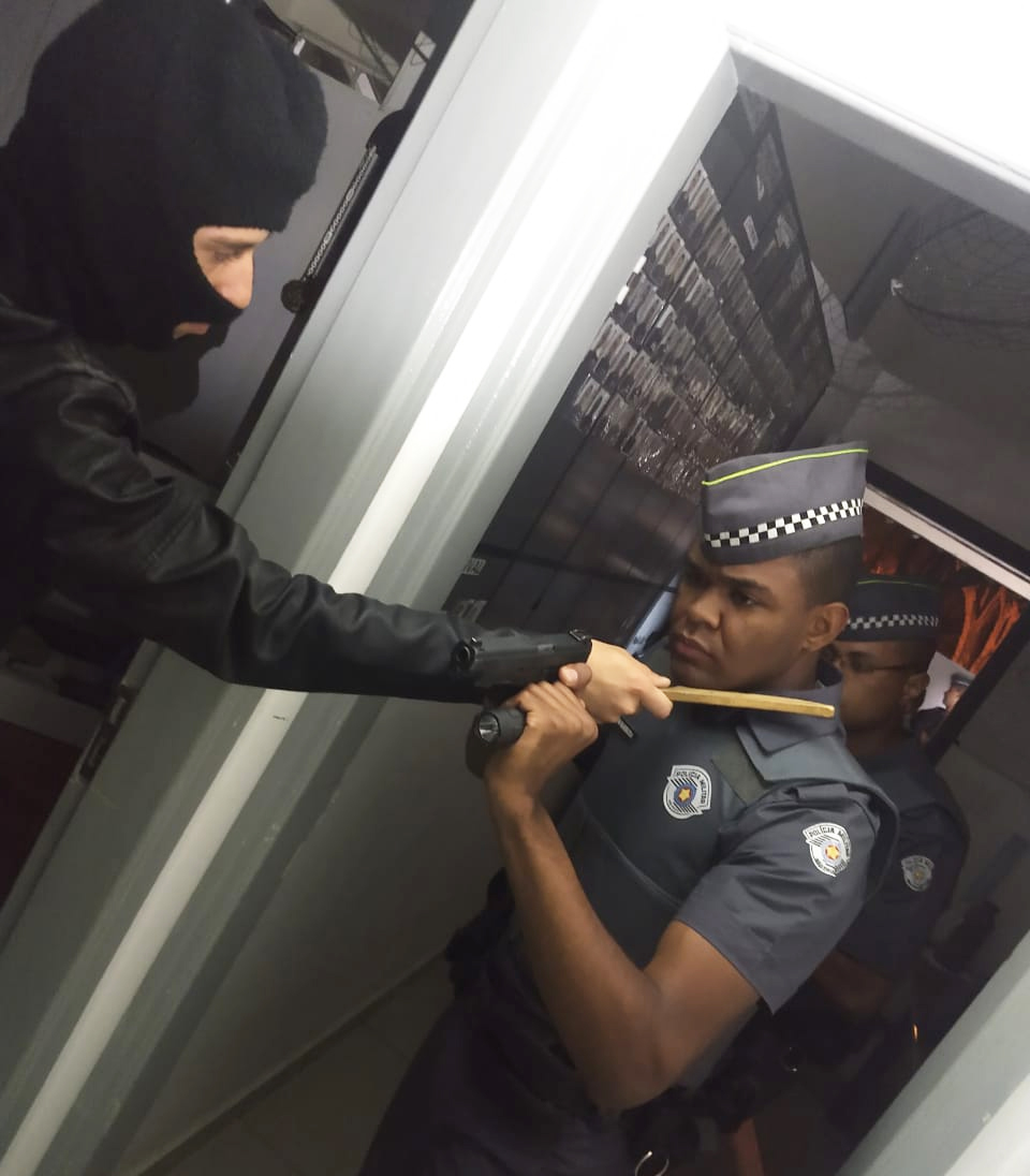 Emprego incorreto de técnica em ambiente confinado (policial apagou momentaneamente sua lanterna e foi surpreendido pelo agressor).