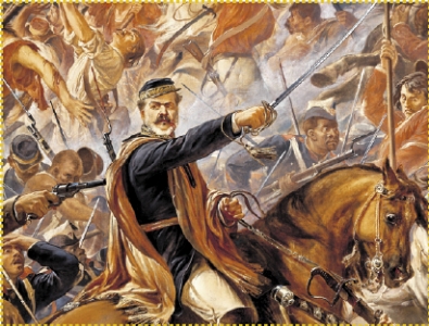 Outra característica da tela que causou algum estranhamento quando ela chegou ao Brasil em 1877, foi a oposição entre os papéis de Duque de Caxias e General Osório. Enquanto Caxias aparece em uma colina, observando de longe a caótica batalha, Osório está lutando e é retratado com um filete de sangue na boca – o general foi realmente ferido naquele combate. Osório também se distingue de todos os oficiais ao usar um poncho, vestimenta que o general gaúcho de fato usava com frequência e era bastante associada à sua figura, de acordo com mais de uma biografia.