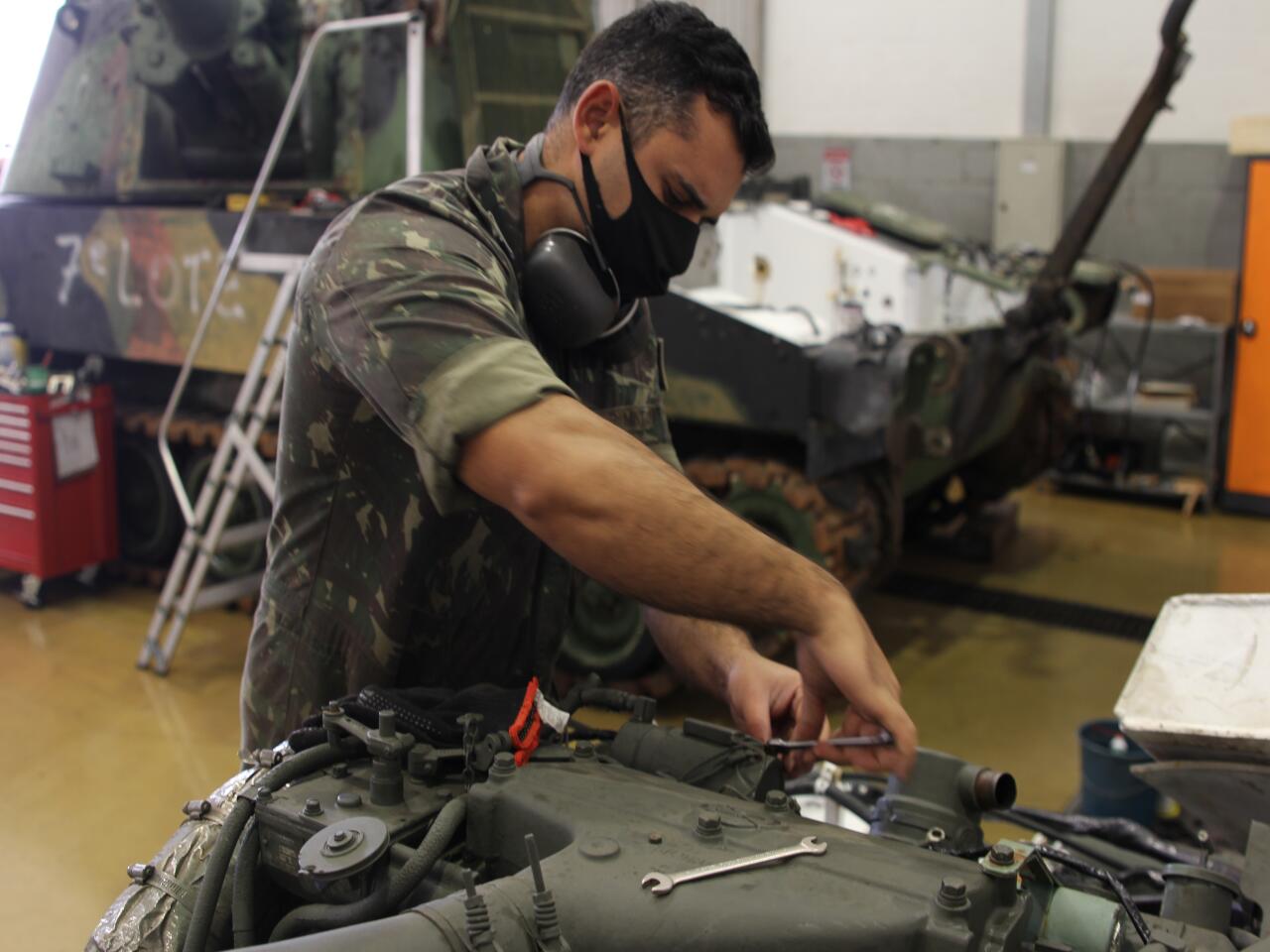 Em seguida, foi realizada uma visita às diversas oficinas e repartições, onde o Diretor explicou os processos de manutenção dos blindados e também os produtos que estão sendo desenvolvidos para proporcionar os reparos de forma rápida e eficiente.