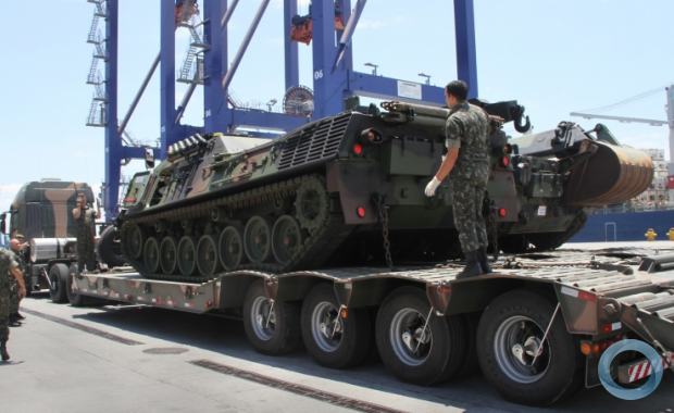 O Porto de Paranaguá desembarcou quinta-feira (6) quatro tanques encomendados pelo Exército Brasileiro. Vindos da Alemanha a bordo do navio Grande Amburgo, os blindados seguiram até Santa Maria, no Rio Grande do Sul. A retirada dos veículos foi rápida, mas contou com logística e estrutura militares pouco comuns no cais.