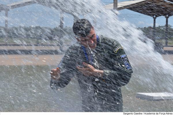 O momento foi comemorado com a tradicional entrega do cachecol, símbolo do voo solo, além do tradicional banho dado pelo caminhão de bombeiros e do toque do sino na entrada do Primeiro Esquadrão de Instrução Aérea (1° EIA).