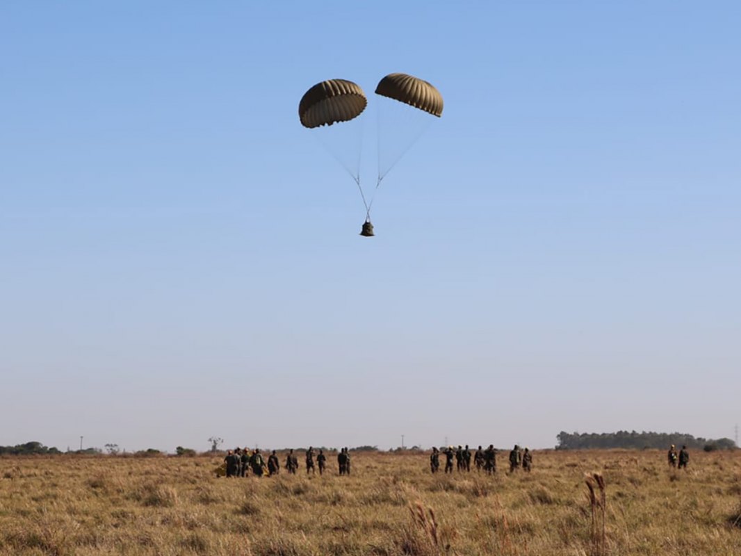 Nos dias 22 e 23 de julho, os alunos do Curso de Dobragem, Manutenção de Paraquedas e Suprimento pelo Ar (DOMPSA), do Centro de Instrução Paraquedista General Penha Brasil, em conjunto com militares do Batalhão DOMPSA, realizaram o lançamento de sete cargas médias, com cerca de 400 kg cada, contendo suprimento de água e ração operacional. Os materiais foram lançados na zona de lançamento de Metelo, na região de Terenos, no Mato Grosso do Sul, em apoio à Operação Ágata.