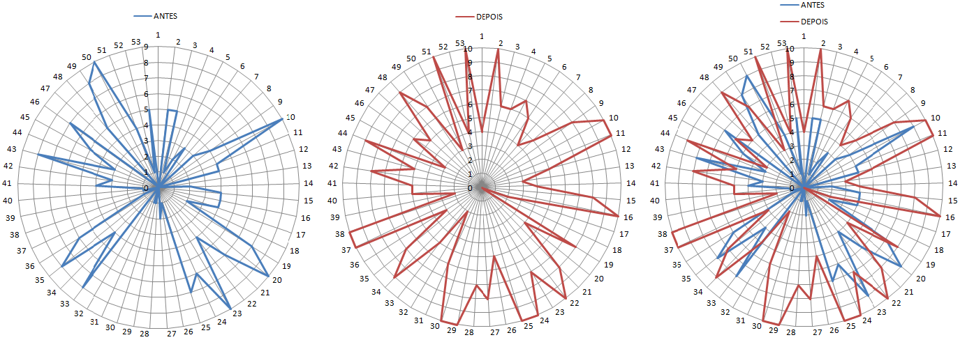 | Figura 1 – Gráficos tipo Radar da Análise Quantitativa Antes/Depois. Fonte: O Autor (2021) |