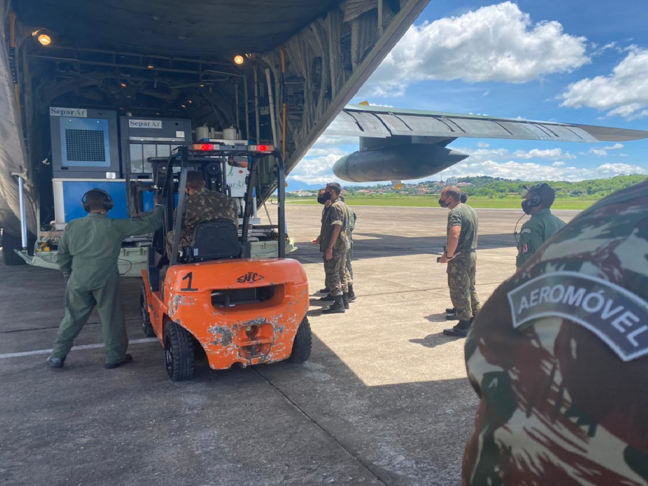 O equipamento, que produz oxigênio concentrado, foi disponibilizado pela Escola de Especialistas da Aeronáutica e foi transportado para o local de embarque sob coordenação do 5º BIL. Para o cumprimento da missão, foram utilizados equipamentos da 2º Companhia de Transportes (2ª Cia Trnp).