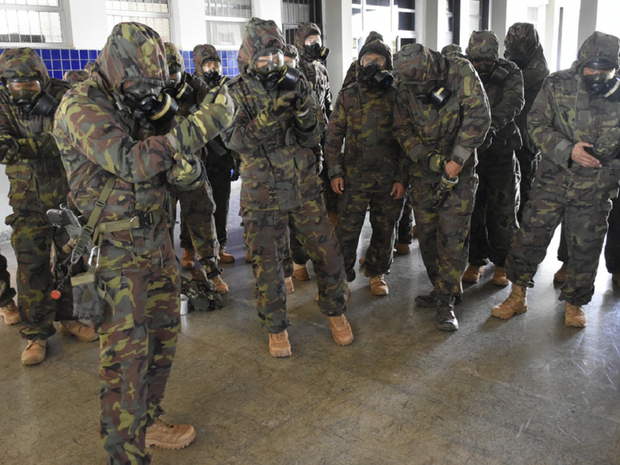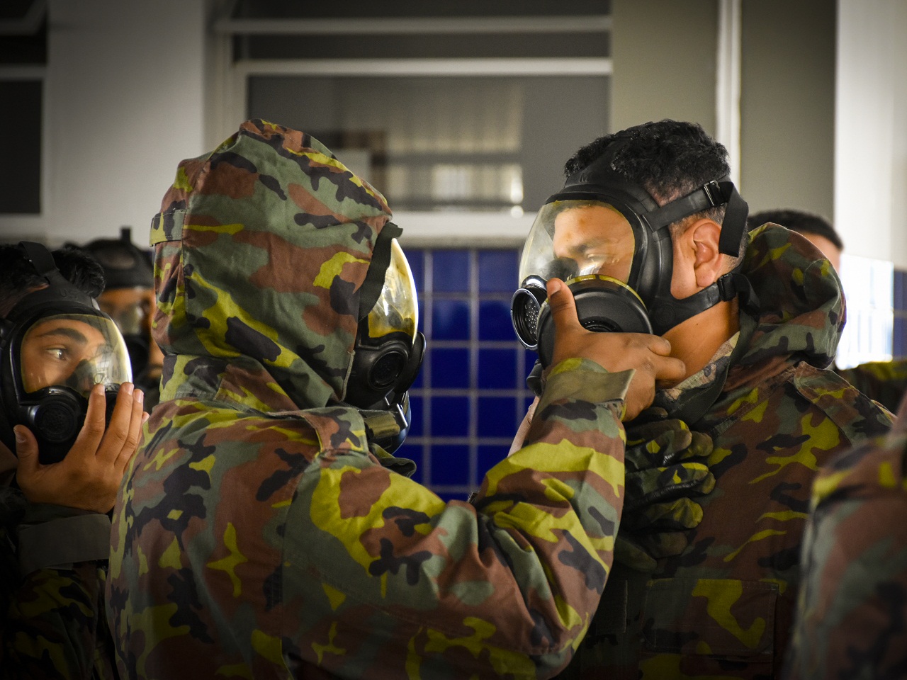 A tropa adestrada utilizou máscaras contra gases e roupas protetoras permeáveis de combate, como equipamentos de proteção individual, sob orientação de um oficial de ligação de DQBRN. Foram realizadas, ainda, instruções de nivelamento sobre os procedimentos em caso de emergência química, biológica, radiológica e nuclear, e o emprego adequado de medidas operacionais de proteção preventiva de acordo com o fator de degradação da performance da tropa.