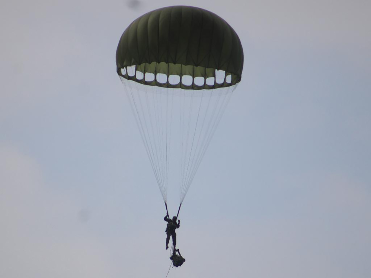 Inserida no contexto de um exercício simulado, com situações gerais e particulares hipotéticas, a 2ª Companhia de Fuzileiros Pára-quedista realizou uma incursão aeroterrestre por meio de salto de paraquedas semiautomático.