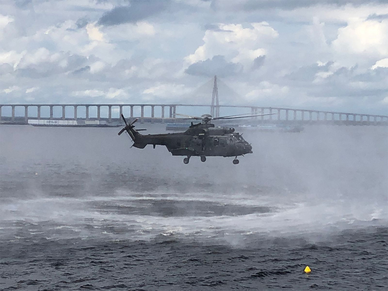 Os riscos de acidentes são grandes, e uma equipe especializada em resgate em meios aquáticos torna-se fundamental. Assim, a equipe do CECMA transportou as equipes de mergulhadores e os SAR (Search And Rescue) da Aviação do Exército durante o exercício.