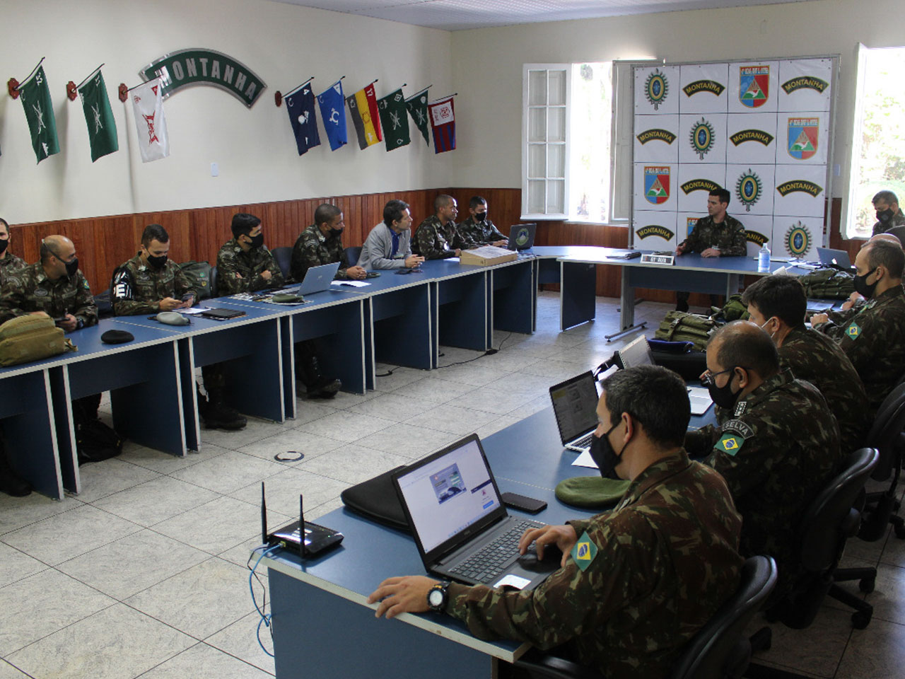 Na sequência, o Coronel Dos Anjos, do Centro de Doutrina do Exército, apresentou o processo de confecção do Manual de Campanha. Encerrando os trabalhos da manhã, o Comandante do 32º Batalhão de Infantaria Leve de Montanha, Tenente-Coronel Costa Mattos, realizou a ambientação operacional, em que ressaltou as particularidades do ambiente de montanha e sua influência sobre as operações militares.
