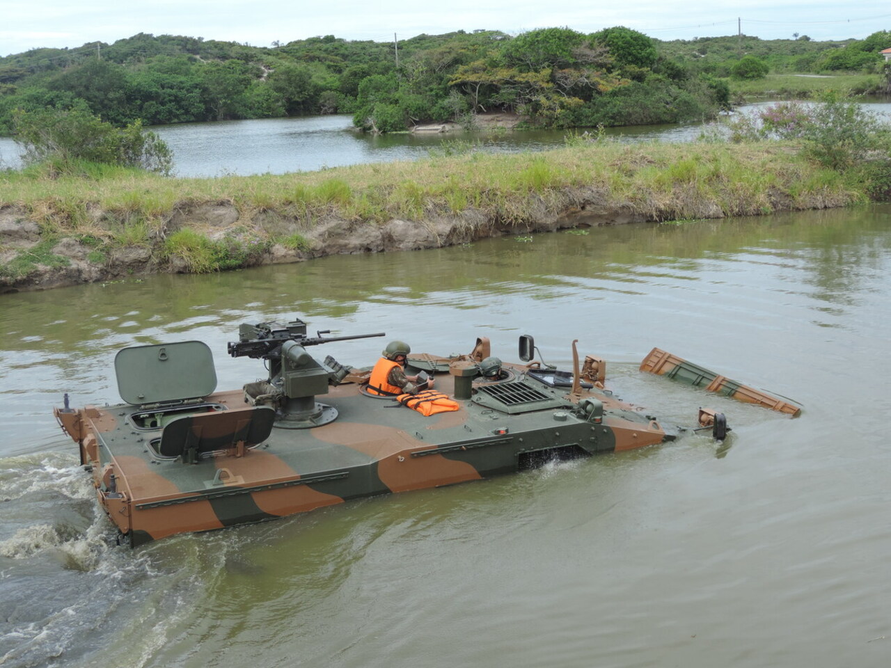 Foram realizadas demonstrações em sítio de obstáculos, como transposição de trincheira, navegação em raia no lago de navegação e navegação em lago com a comitiva embarcada.
