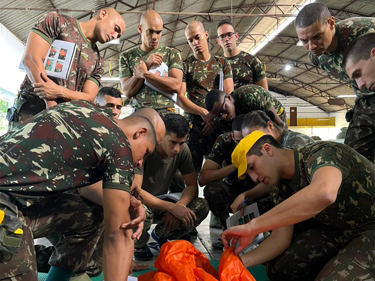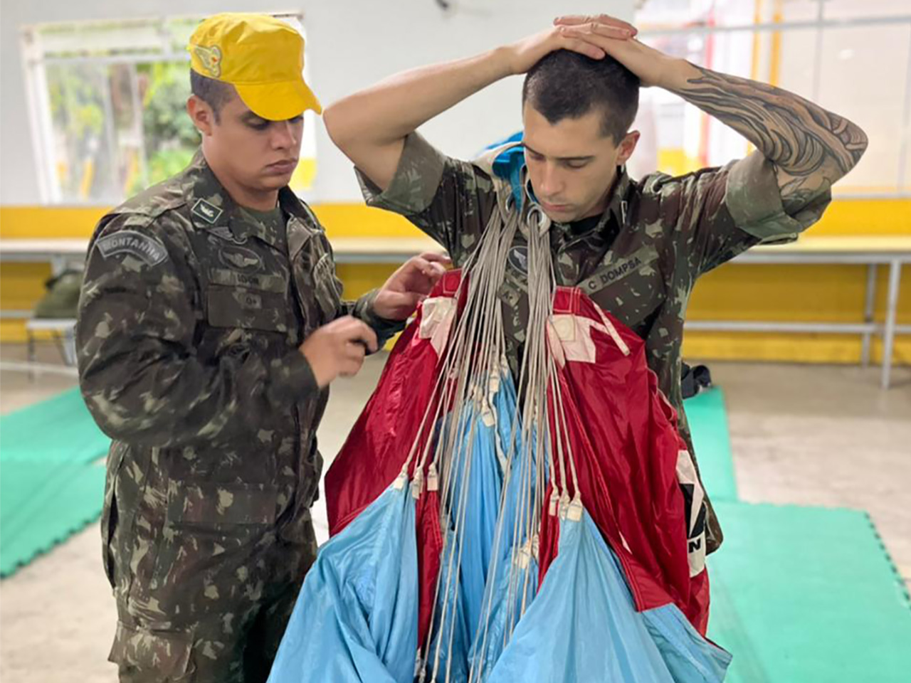 Durante as duas últimas semanas, os alunos do Curso DOMPSA, composto por militares do Exército Brasileiro, Corpo de Fuzileiros Navais da Marinha do Brasil e militares de nações amigas, tiveram suas habilidades, resiliência e conhecimentos testados nas provas práticas e teóricas da fase de dobragem de paraquedas de salto livre desportivo.