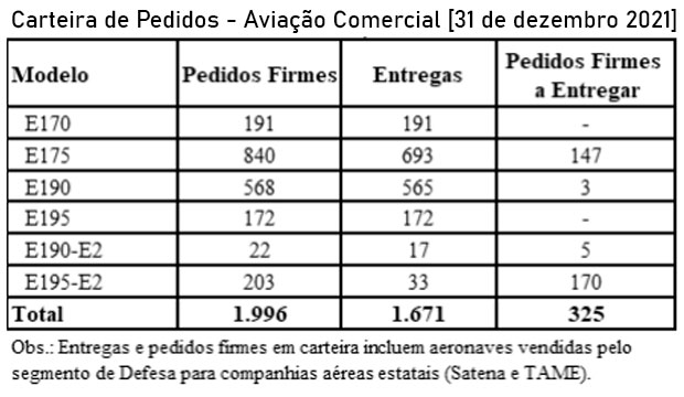 Com isso a família E2 acumulou um total de 50 ordens firmes em 2021 e não teve nenhum cancelamento, constituindo-se como a família líder de mercado no seu segmento.