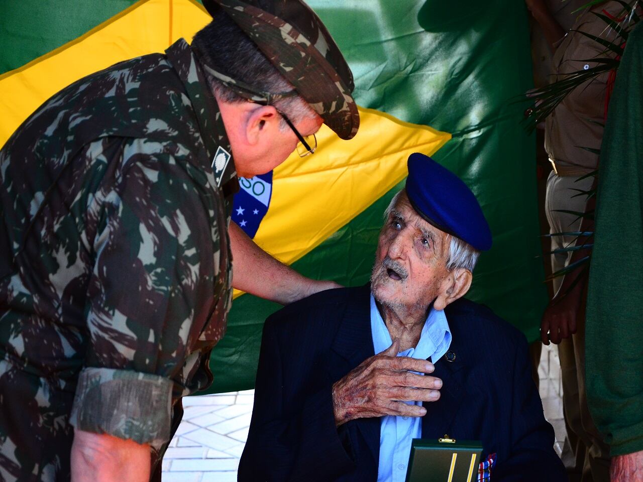 Sorriso estampado no rosto, essa é a marca do ex-combatente da 2ª Guerra Mundial, Agostinho Gonçalves da Mota. A alegria tomou conta do veterano da Força Expedicionária Brasileira nesta sexta-feira, 6 de maio, durante homenagem do Comando Militar do Oeste na véspera de completar 97 anos de vida.