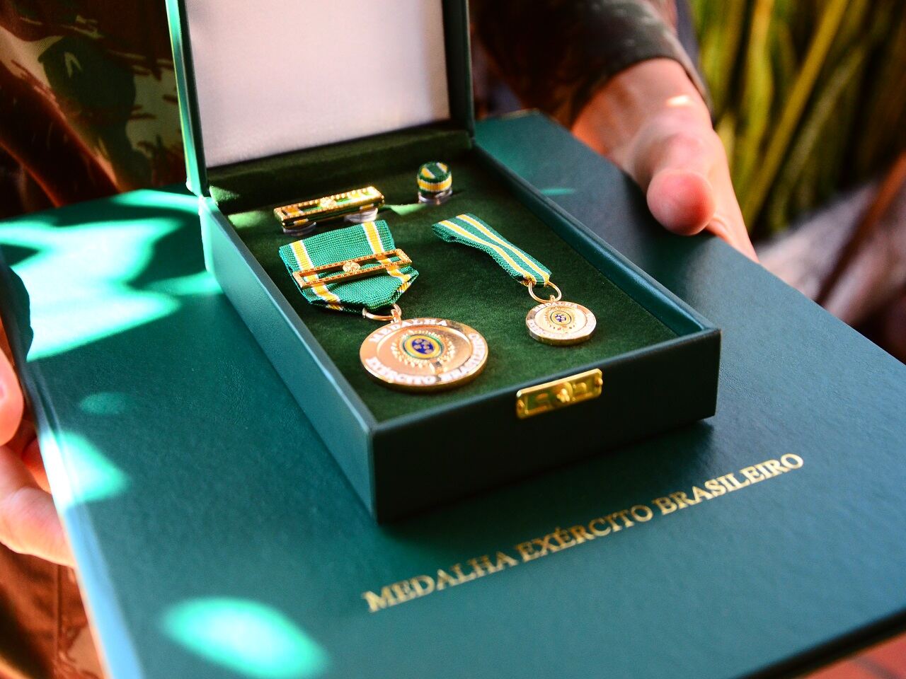 Emocionado, Agostinho retribuiu com continências, beijos, e, claro, muitos sorrisos. Das mãos do Chefe do Estado-Maior do Comando Militar do Oeste, General de Brigada Jayro Rocha Júnior, o ex-combatente recebeu a medalha Exército Brasileiro, em reconhecimento aos relevantes serviços prestados à Instituição. “Todo o agradecimento e reconhecimento da Força pelos feitos do senhor nos campos da Itália.