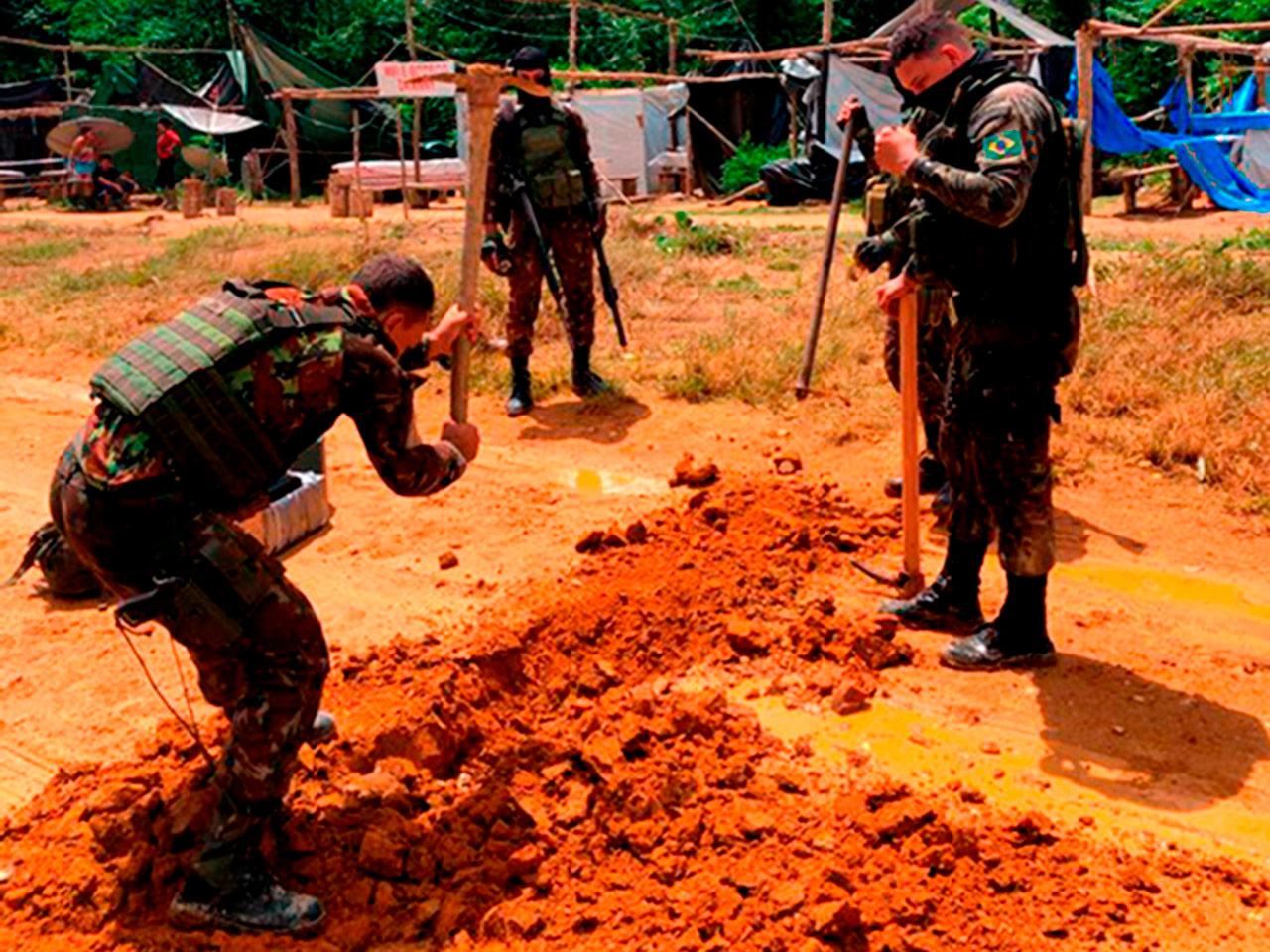 Nos dias 10 e 11 de março, a 1ª Brigada de Infantaria de Selva (1ª Bda Inf Sl) do Exército Brasileiro, no contexto da Operação Verde Brasil 2, participou de uma operação conjunta e interagências de combate ao garimpo ilegal na região de Surucucu (RR). A ação concentrou-se nas áreas do Garimpo do Espadim, Garimpo Mucuim, Garimpo Pau Grosso, Garimpo do Capixaba, Garimpo Hélio e Garimpo do Rangel.