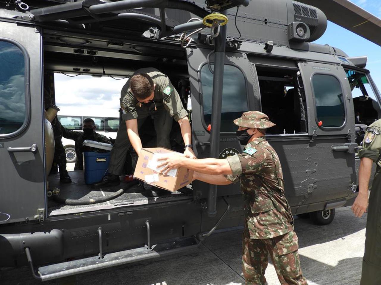 Entre os dias 2 e 7 de fevereiro, o Exército Brasileiro, por meio do Comando de Fronteira Solimões/ 8° Batalhão de Infantaria de Selva (Cmdo Fron Solimões/8°BIS), em conjunto com o 4° Batalhão de Aviação do Exército (4º BaVEx), apoiou profissionais da Secretaria Especial de Saúde Indígena (SESAI) no transporte aéreo de mais de 2 mil doses da vacina CoronaVac destinadas à vacinação de indígenas situados em comunidades do Alto Solimões e do Vale do Javari.