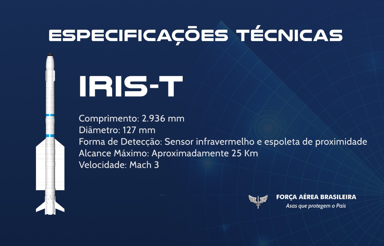 A nova ferramenta integrará o moderno sistema de armas da FAB, que também já dispõe do míssil Meteor. Enquanto o Meteor possui capacidade contra alvos a longa distância, o IRIS-T tem emprego de curta distância, até 30 quilômetros.