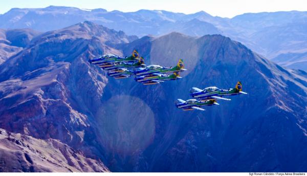 Para chegar ao Chile, as aeronaves da FAB realizaram a travessia da Cordilheira dos Andes em formação e, a partir do KC-390 Millennium, foi possível registrar os A-29 Super Tucano durante o voo.