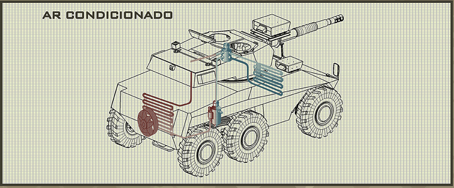 – Instalação de um ar-condicionado para ajudar na refrigeração dos sistemas eletrônicos e melhorar a habitabilidade e ergonomia da viatura.