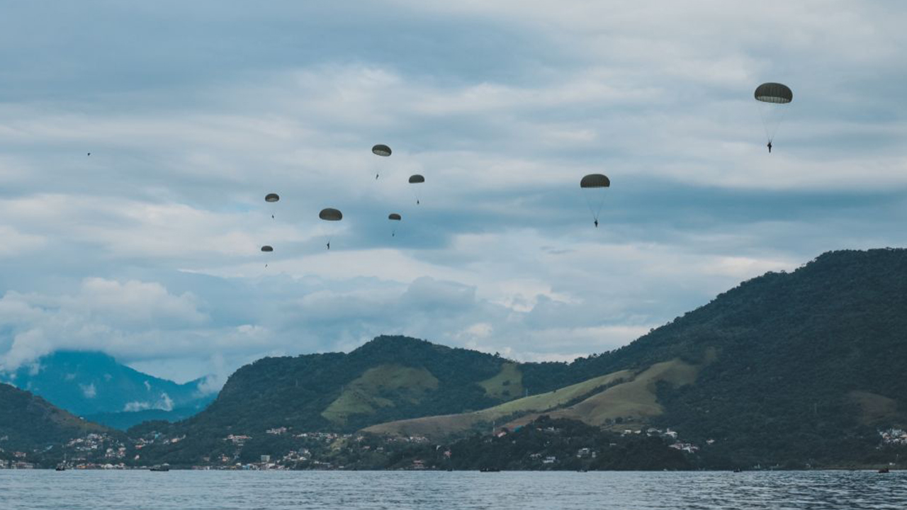 No dia 14 de abril, a Força-Tarefa Biguá (FT Biguá), da Brigada de Infantaria Pára-quedista (Bda Inf Pqdt), realizou o salto em massa d'água na Zona de Lançamento de Sahy, na região de Mangaratiba-RJ.