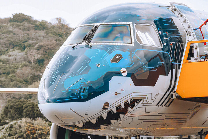 O E190-E2 que esteve em turnê no Vietnã tem a pintura do TechShark e foi recentemente apresentado no Singapore Airshow. O design exclusivo do TechShark reflete a inovação de engenharia e a eficiência simplificada dos mais recentes jatos E2 da Embraer.